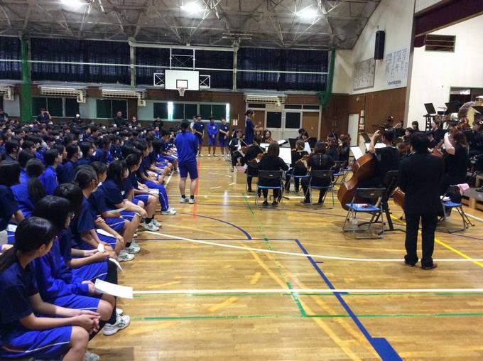 本日、「文化芸術鑑賞教室」が行われ、プロのオーケストラ「おーけすとら・ぴとれ座」 の演奏を鑑賞しました。プロの演奏表現を実際に味わい、生徒達にとって心に残る体験となったことと思います。今回の体験を通して育まれた感性や感動を、今後の学びや生活にもつなげていけるよう、学校としても引き続き支援してまいります。