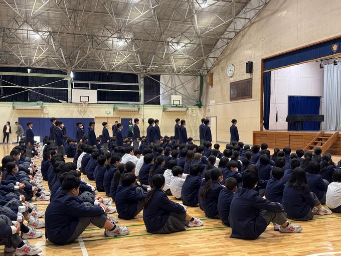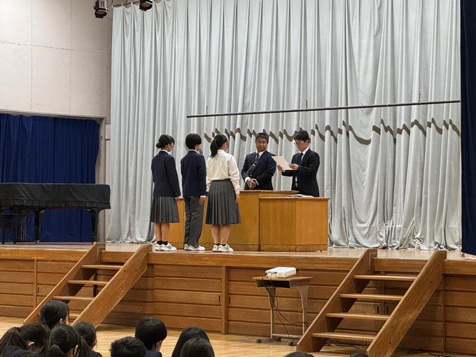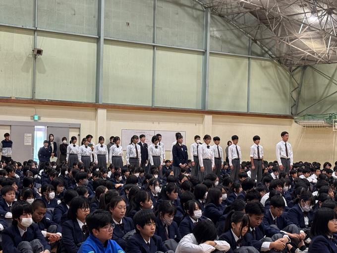 特に心に残ったのは、生徒会長のあいさつです。生徒会長は、「思いやりのある行動が感謝をうみ、感謝が新しい感謝をうむ。そうやって感謝の連鎖が生まれていく。」と述べ、「感謝と思いやりを大切にして、よりよい学校にしていきましょう」と全校生徒に呼びかけました。生徒たちが互いに尊重し合い、自治的な活動を通してよりよい学校生活を自らで築き上げていく。この経験こそが、彼らの未来を切り開く大きな力になると改めて感じました。