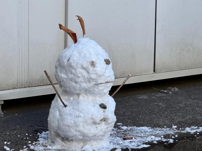 そんな月曜日のお昼ごろ、校内を巡回していると、校舎の陰に誰かが作ったかわいらしい雪だるまが、ちょこんと座っているのを発見しました。そのあまりに愛らしい姿に、思わず心がほっこりと温まりました。