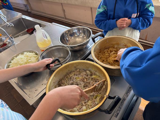 本日、10組さんによる「バレンタインバザール」が開催されました。 今年度最後となる今回の販売会、テーマは「先生方にすてきな製品を届けよう♡」。メインメニューは「豚汁」と「肉丼」でした。豚汁は、お出汁がしっかりと効いていて、具材もたっぷり。 肉丼は、お肉に味がしっかりと染みていて、ご飯がもりもり進む美味しさでした。 その本格的な味わいに、先生方も「美味しい!」と大感激の様子でした。ランチ販売のほかにも、手作りクッキーや、手帳カバー、ペンケース、ポーチ、かばん、ペン立てといったグッズの販売もありました。 クッキーはもちろんのこと、グッズも丁寧に作られた素敵な作品ばかりで、どれも大好評でした。