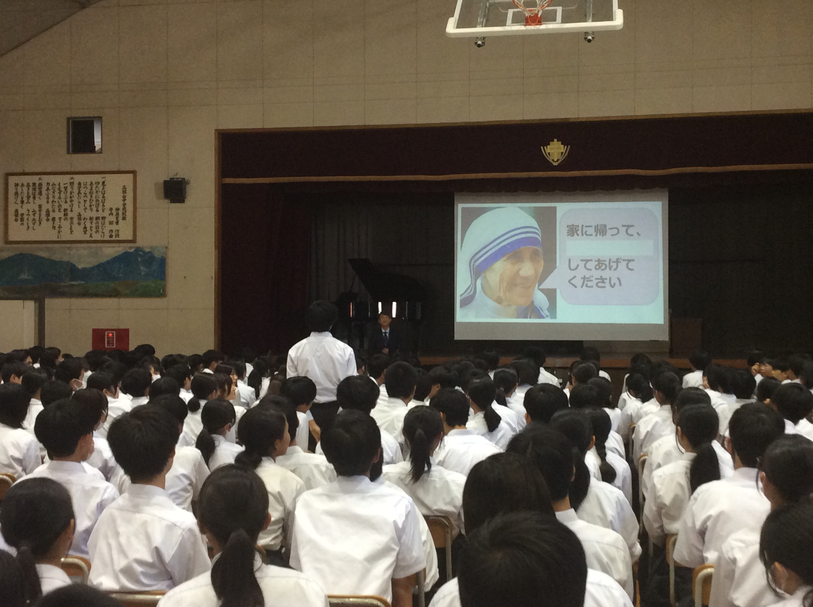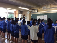 5校時体育館にて前期終業式が行われました。校長先生から平和についてのお話がありました。終業式に続いて先日の生徒会役員選挙で選出された本部役員生徒の任命式が行われました。その後、先日の駅伝大会に出場した選手紹介、結果報告や表彰関係の披露が行われました。最後に美術部が制作した絵が披露されました。職員玄関付近に飾られる予定です。6校時は学級で担任から前期通知表が一人ひとり渡されました。土日を挟み来週から後期がスタートします。前期の反省を生かし気持ちを新たに後期をスタートしましょう!