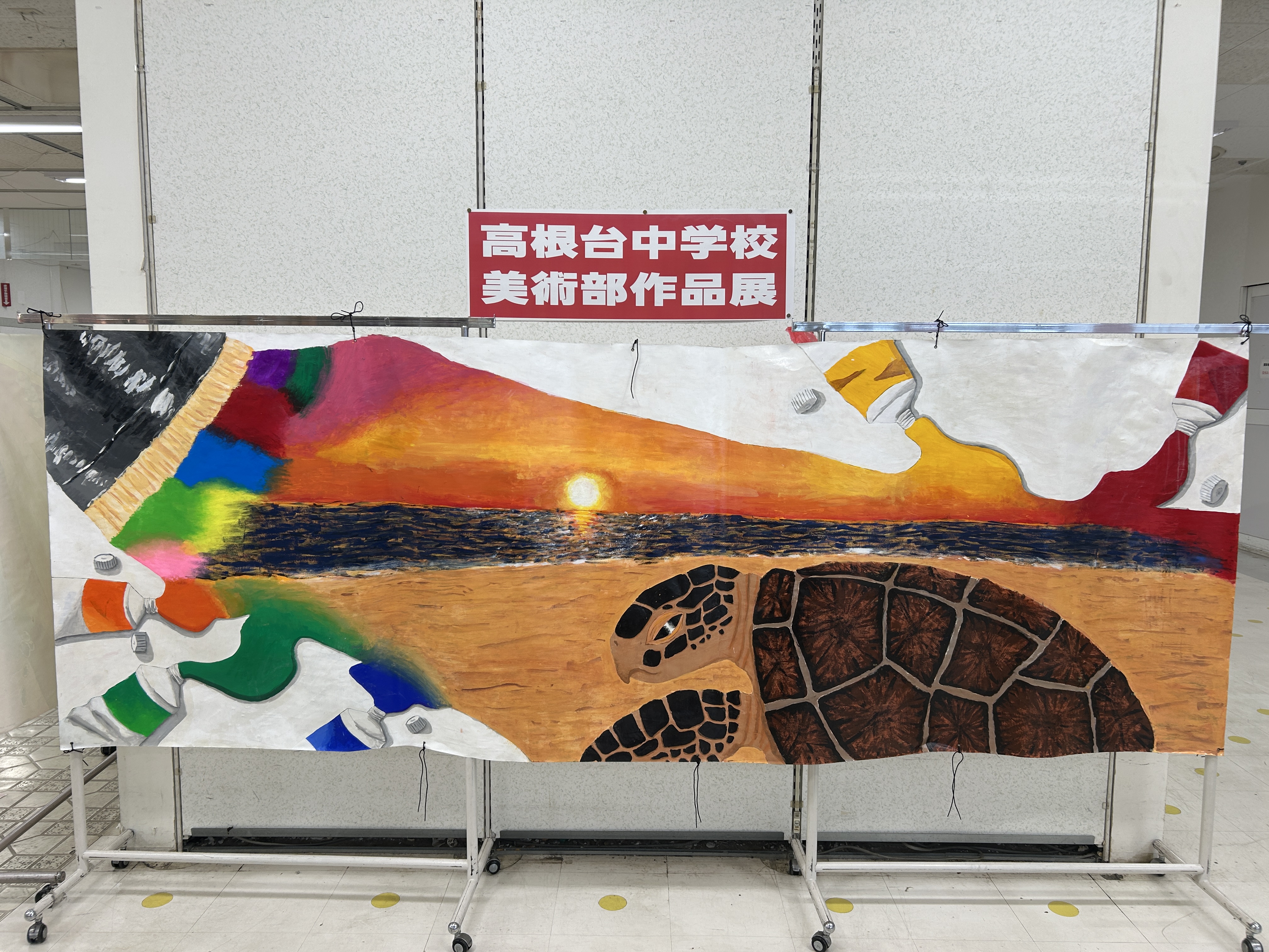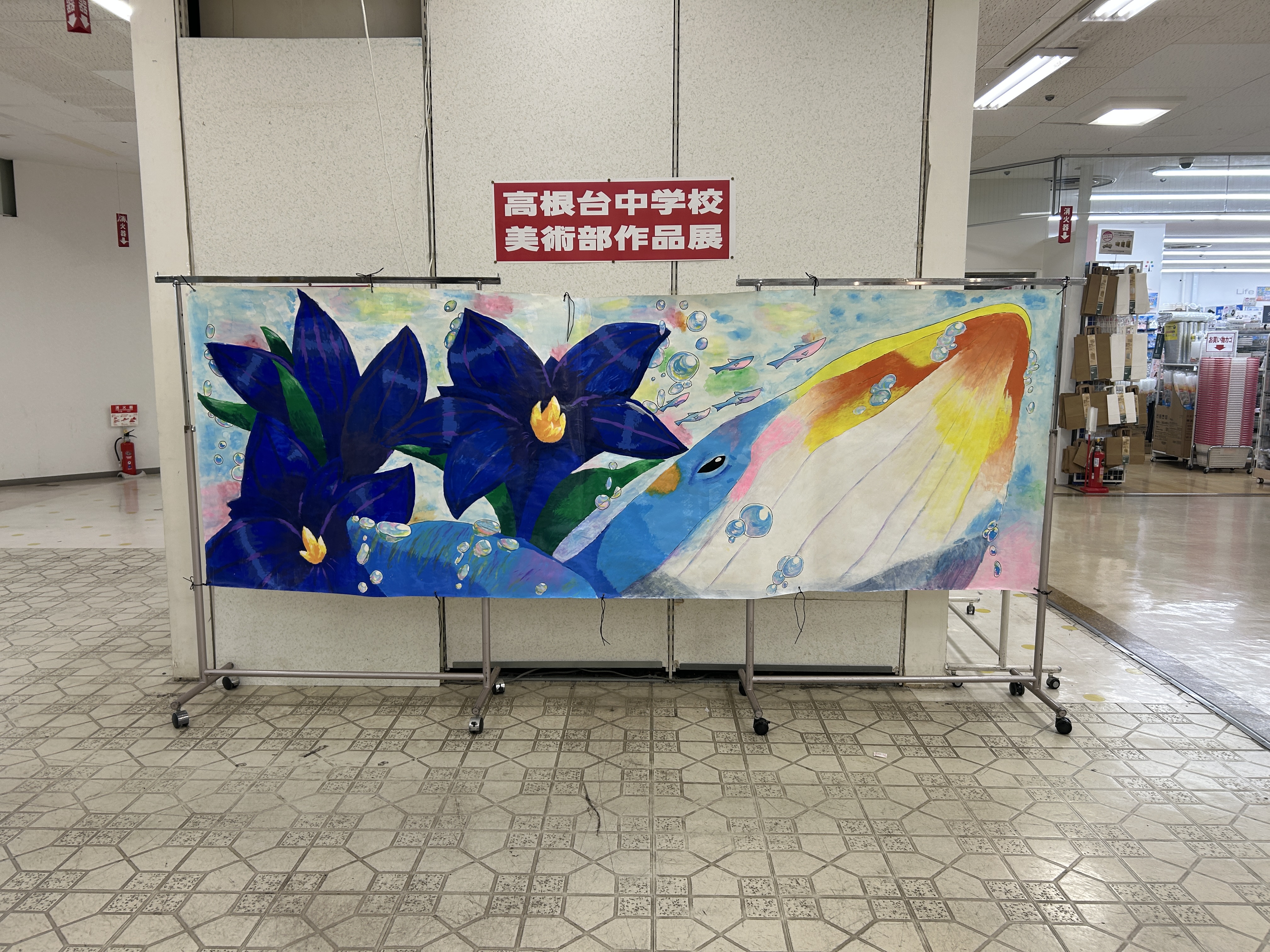 体育祭に向けて制作した美術部の「体育祭テーマ絵」が現在、イオン高根木戸店2階フロアに14日(火曜日)まで展示されています。
