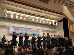 11月8日に高根台公民館にて第21回福祉フェスティバルが開催されました。本校からも吹奏楽部と有志でボランティアスタッフとして生徒が参加しました。各ブースで販売や催しのお手伝いを行いました。吹奏楽部は講堂にて45分間にわたり演奏を披露しました。満員となった観客を前に、普段の練習の成果が発揮され、非常に盛り上がる内容でした。観客の皆様からも盛大な拍手を頂きました。休日にも関わらず朝から楽器運搬のお手伝いを頂いた保護者の皆様、ありがとうございました。
