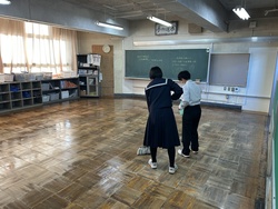 本日は年内最後の給食でした。昼休み後は大掃除を行いました。普段手の行き届かない場所まできれいにすることができました。教室内の机などはすべて廊下に出され、美化委員でワックスがけが行われました。何十年と使用している教室も、年に2回のワックスがけで床が一瞬よみがえります。