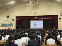 年明けの全校集会が体育館にて行われました。校長先生の話では「失敗は発見」という言葉が全校生徒に贈られました。内容は学校だよりに掲載されています。表彰披露では、大会やコンクール、作品展での入賞者がステージ上で全校生徒に披露されました。全校集会後には体育館にて薬物乱用防止教室が行われました。講師は本校の学校薬剤師である安部先生によりお話頂きました。ドラッグストアで売られている医薬品であっても、まちがった使い方をすれば、健康を害する危険性があることや、医薬品の乱用に陥っている人へのかかわり方や相談窓口に関する情報もお話いただきました。