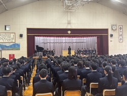 まずは着任式が行われ、令和7年度末の人事異動に伴い、新たに14名の教職員を迎えました。着任された先生方を代表し、校長先生からから挨拶をいただきました。生徒たちは興味深く耳を傾け、温かな拍手で新しい仲間を歓迎しました。