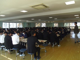 卒業お祝いメニューということで、人気の献立が提供されました。いつもはあまりお代わりをしない生徒もたくさんお代わりの列に並んでいました。
