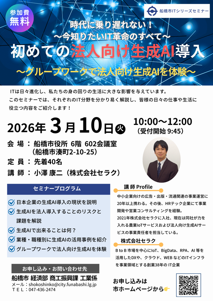 - ITシリーズセミナーを開催します!(第11回 テーマ:生成AI)