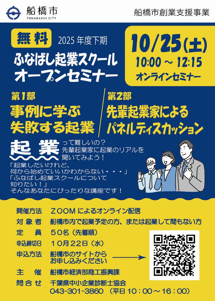 【10月25日(土曜日)】ふなばし起業スクールオープンセミナーを開催します!