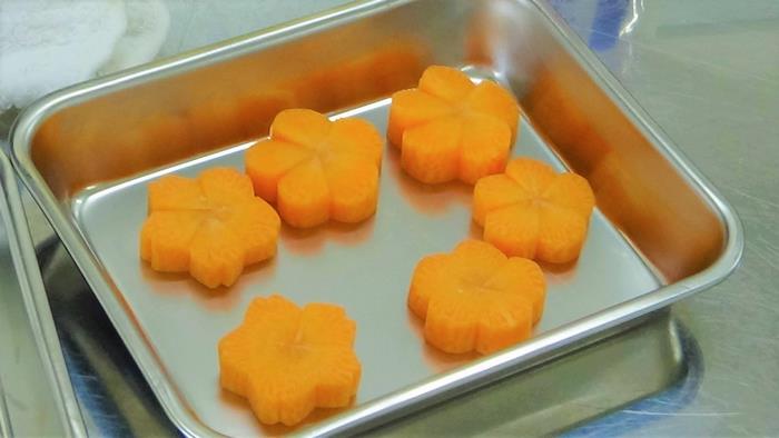・日本料理の基礎となるような調理技術が入ったレシピとなっています。里芋の六方剥きや梅のねじり剥きなどは、お正月にも適した料理です。本日は「一汁二菜」をテーマに、ご飯に対して一つの汁と二つのおかずを用意しました。