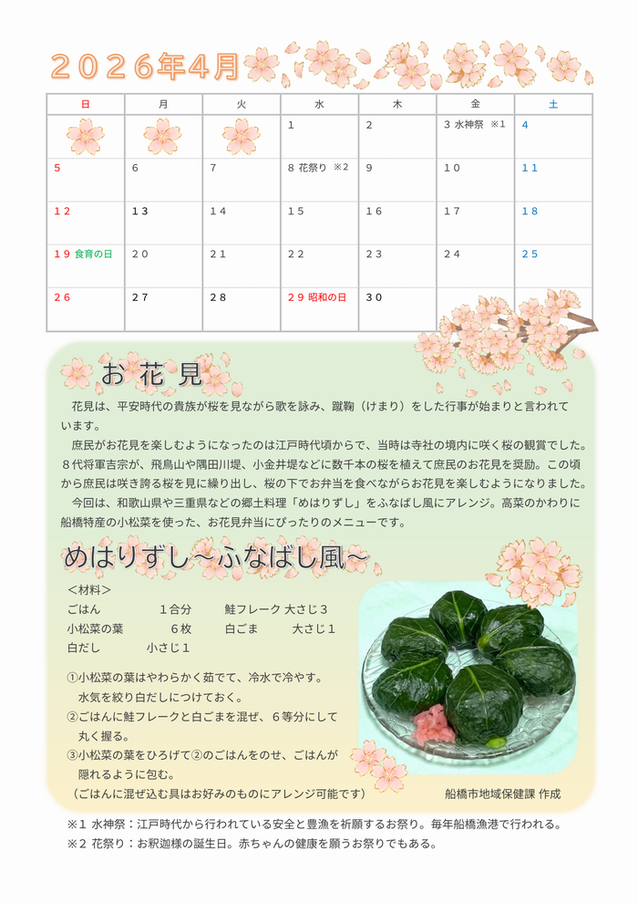 行事食カレンダー(令和8年4月)