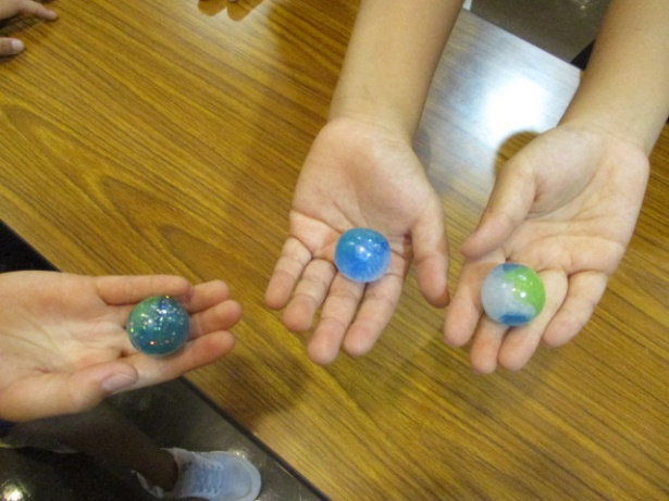好きな色を混ぜて丸くしスーパーボールのようにする子や、アクセサリーを作る子もいました。