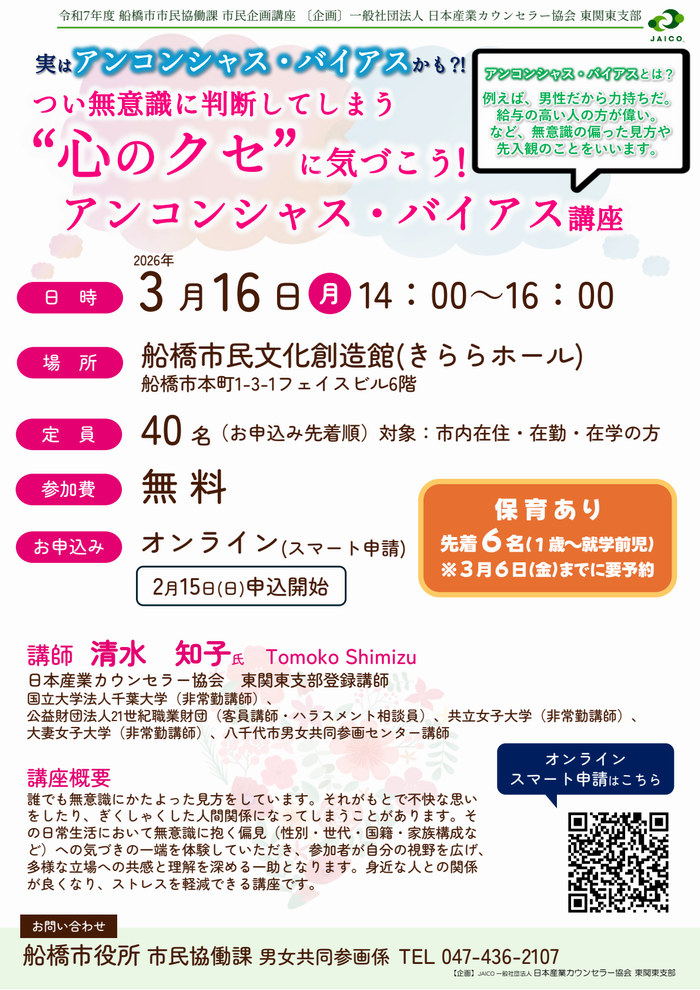 - 【市民企画講座】「アンコンシャス・バイアス講座」を開催します