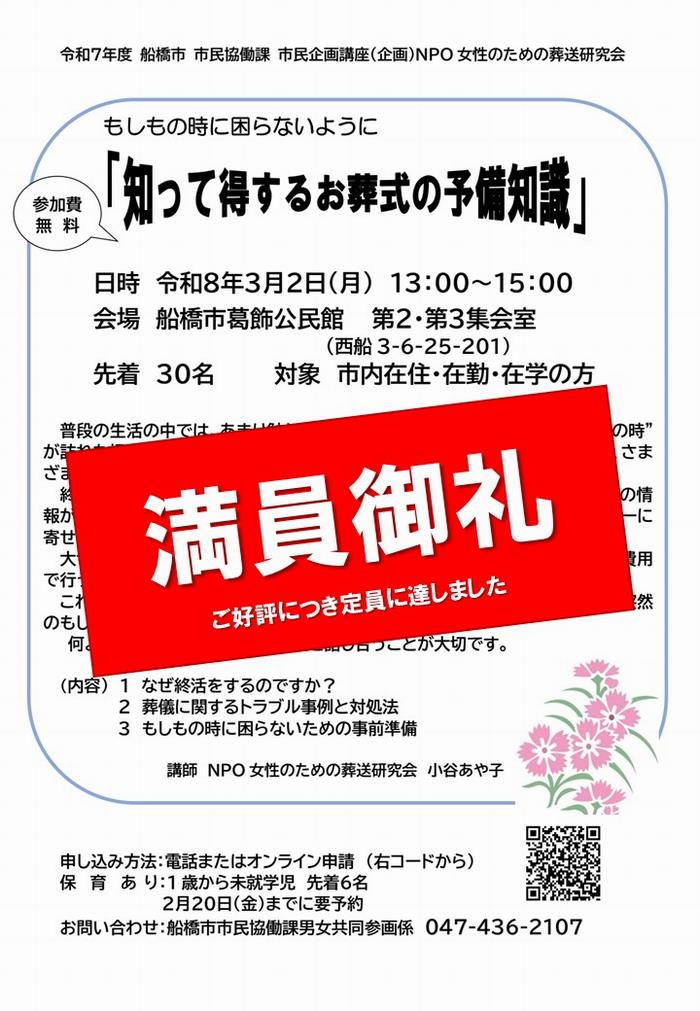 ★満員御礼★【市民企画講座】「知って得するお葬式の予備知識」を開催します