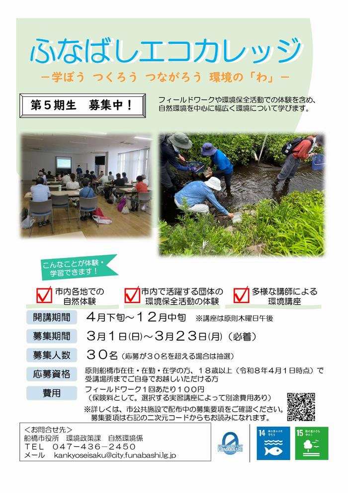 【ふなばしエコカレッジ】第5期募集要項(PDF形式1,603キロバイト)