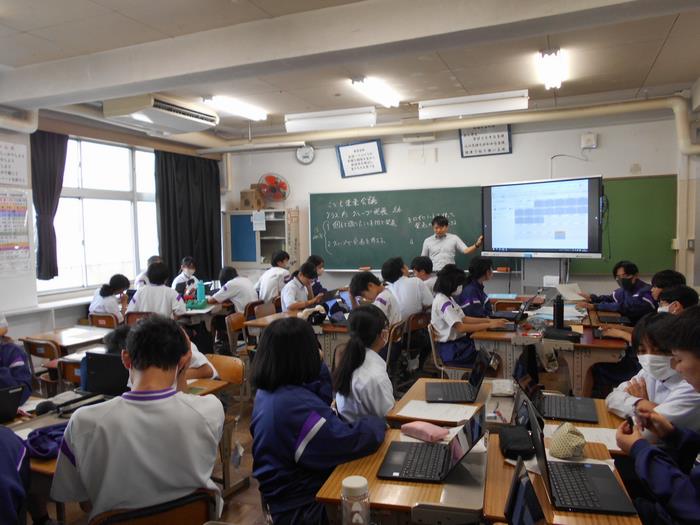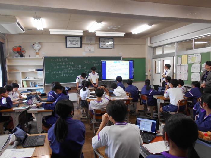 「こども未来会議室」に向けて、学校ごとの意見をまとめるため、市立中学校の2年生の授業において事前学習が行われました。