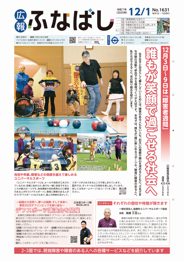 | 1面 | 12月3日~9日は「障害者週間」 誰もが笑顔で過ごせる社会へ ~船橋から世界へ、夢への挑戦・そして未来へ 東京2025デフリンピックを振り返る~ デフスポーツ講演会を開催 |