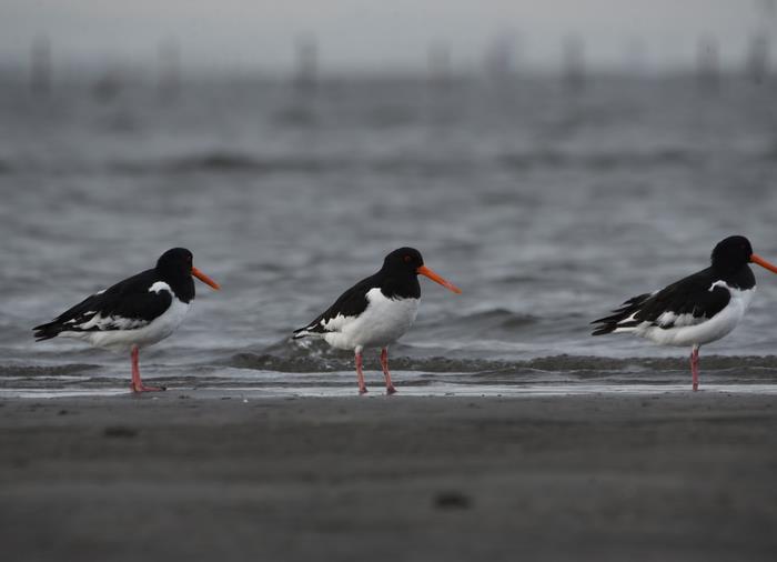 ミヤコドリは、日本では見られる場所が限られている野鳥で、三番瀬がその一つです。世界では「準絶滅危惧種」に分類されており、日本ではいろいろな地域でレッドリストに登録されています。三番瀬には1970年ごろから飛来するようになり、1980年ごろは10~20羽でしたが、現在では毎年300羽ほどが見られます。ミヤコドリは本来冬に多く見られる冬鳥ですが、三番瀬では夏も確認されています。それだけ三番瀬が、ミヤコドリにとって大切な場所であることが分かります。