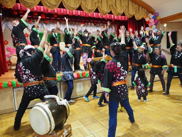 また、楽遊集さくら太鼓はお祭り以外にも、他の施設で演奏する活動をしています。施設内で演奏する際に気をつけていることを聞いたところ「頑張っている姿をみてもらい、少しでも元気の「おすそわけ」が出来たらいいなという思いと、要望にあった演奏や施設の利用者の方々と一緒にその時間を楽しんでもらえるような工夫をしている」と話してくれました。