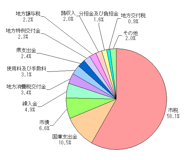 平成17年度予算は、歳入の根幹をなす市税で、個人市民税がわずかに増加に転ずるとともに、法人市民税についても企業の業績等を反映し増加が見込まれるなど、市税全体で4年ぶりに増収を見込んでいます。また、三位一体改革に伴う税源移譲として、所得譲与税19億3,000万円、地方交付税13億円を計上しました。