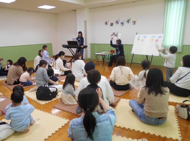 y♪coffretさんによる歌とピアノとエレクトーンのコンサートでは、親子で一緒に音楽を聴いて楽しんでいました。
