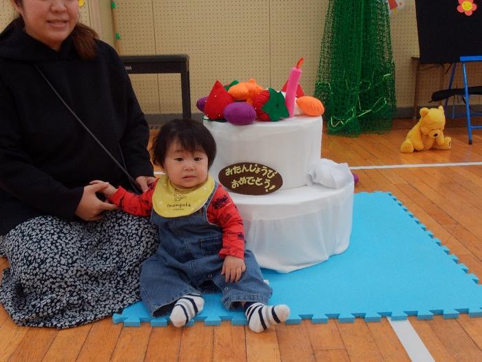 1歳になった2人のお友達が、誕生日のお歌でみんなにお祝いしてもらいました。