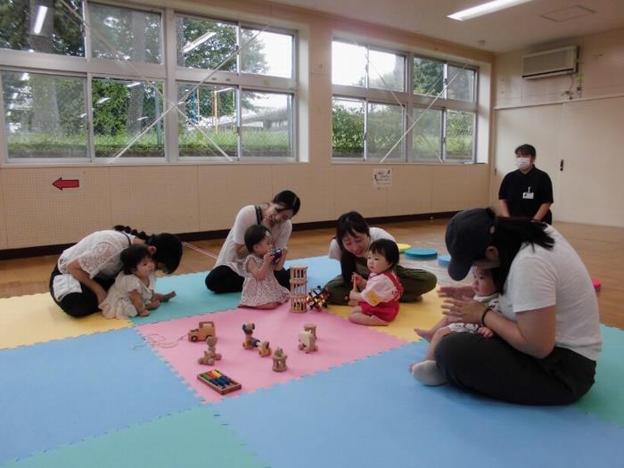 ふれあい遊び、わらべうた、読み聞かせ、季節の簡単工作、フリートークなどおこなっています。