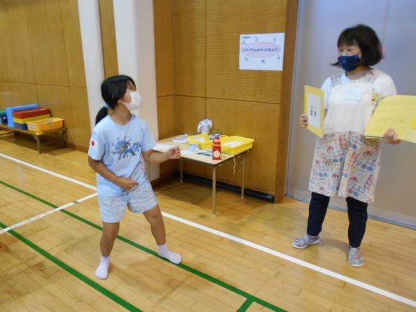 聖火に見立てたボールをゴールに入れたり、たくさんの文字の中から「オ・リ・ン・ピ・ッ・ク」の字を見つけたり、オリンピックに関するクイズやストラックアウトをして遊びました。