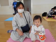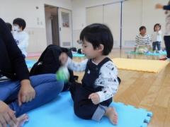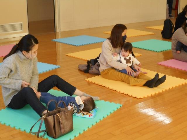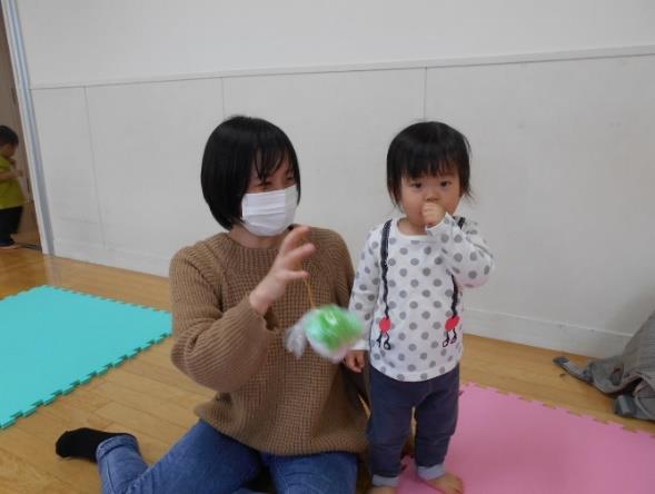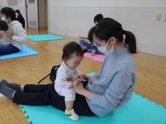 ママと赤ちゃんがふれあって遊び、いいお顔が見られました。