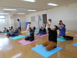 また、ママのストレッチも取り入れ、日頃のコリをほぐしていただきました。