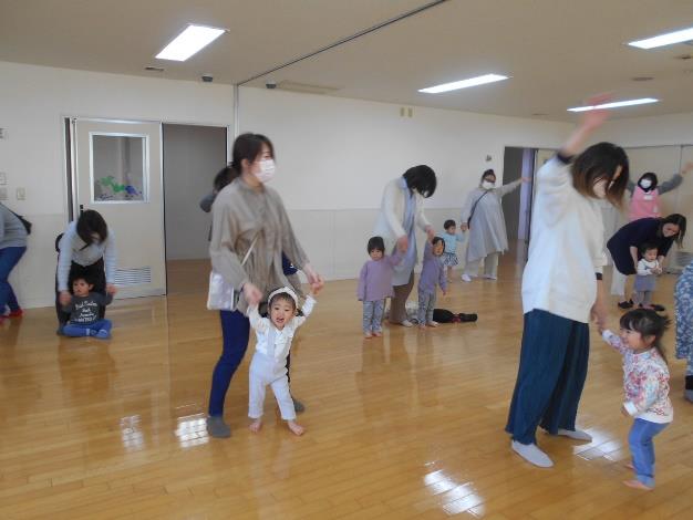 3月11日(金曜日)のあつまれヨチヨチでは、恒例の「バナナくんたいそう」を元気に踊った後、ママと一緒に「手をたたきましょう」の手あそびを楽しみました。