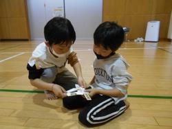 1年生も根気強く取り組み、作品ができあがると狭い会場の中でもスペースを見つけては実際に遊び、たくさんの歓声が上がっていました♪