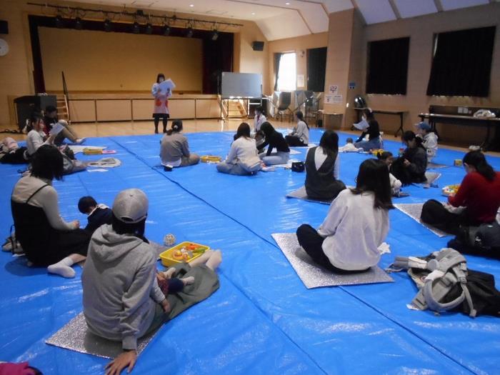 4月22日(火曜日)、0歳の赤ちゃんとパパ、ママを対象に理学療法士の先生による「赤ちゃんの身体の発達」についてのお話がありました。