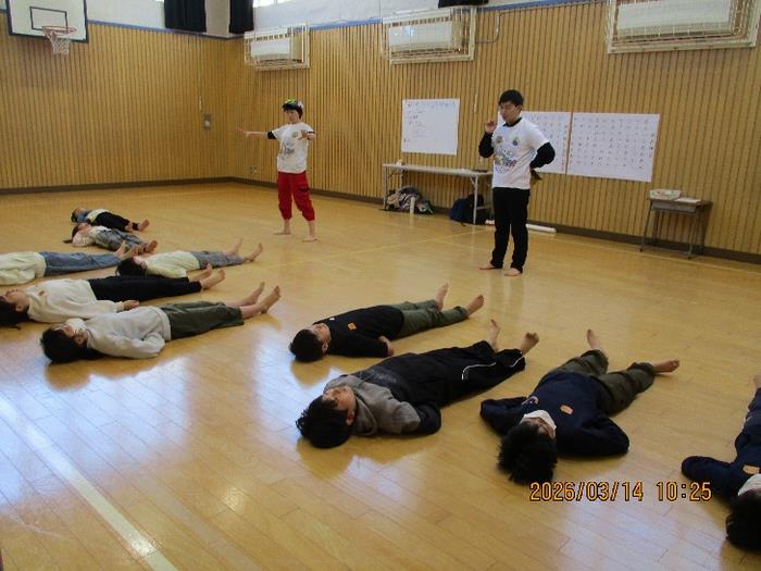 講師から「演劇は、実はスポーツです。」と始めに説明があった通り、まずはしっかり準備運動。