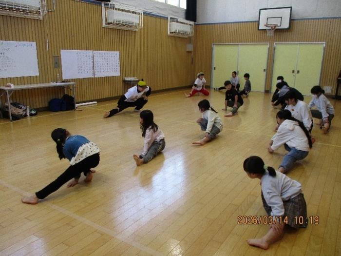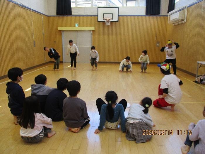 子どもたちが大好きな「夢をかなえてドラえもん」の曲に合わせて、スクワットをしたり、くるくる回ったり、少しだけハードなダンスをして締めくくりました。