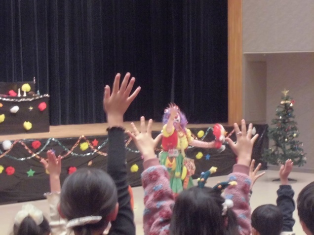 職員のハンドベルの後、人形劇グループばくさんによる人形劇♪