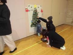 壁に飾った布製のクリスマスツリーに、リボンをたくさん貼っていき、素敵なリボンツリーが完成しました。1歳さんの力作リボンツリーは、25日(水曜日)午後に行われる「スペシャルクリスマス会」でも飾ります。楽しみにしていてくださいね!!