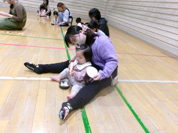 みんなで輪になって歩いたり、ママと一緒にダンスを踊りました。
