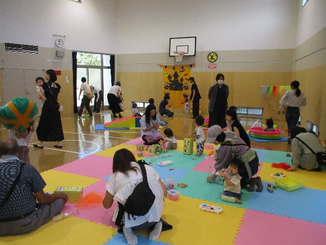 赤ちゃんひろばを卒業した親子さんがお友達同士で参加する姿もあり、秋の行事をみんなで楽しむ賑やかな時間となりました。