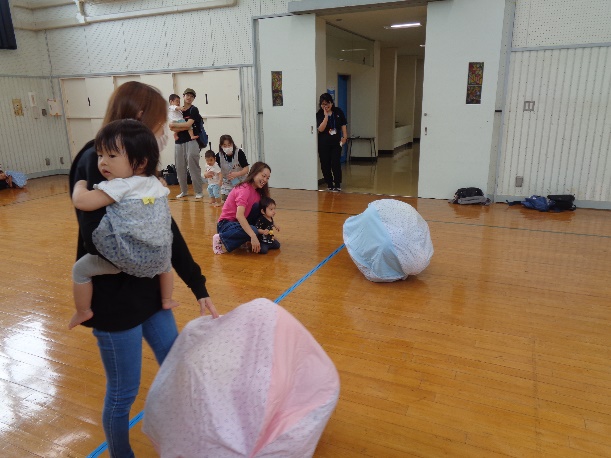 体をうまく使って通り抜けたり、隠れたりする姿に見ている保護者の方も思わず笑顔になっていました。