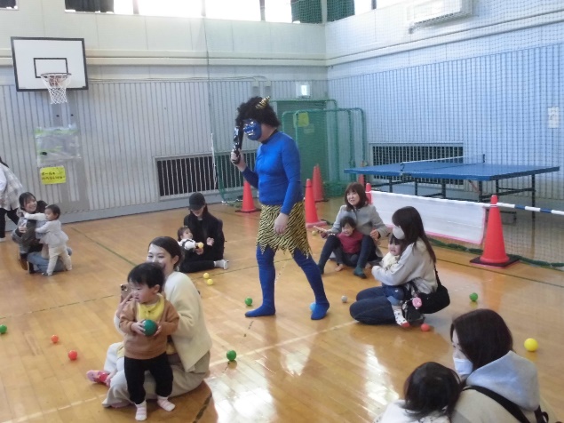 午前の乳幼児と保護者の部では、ふれあい遊びや簡単製作、ペープサートやダンスと盛りだくさんの30分間!