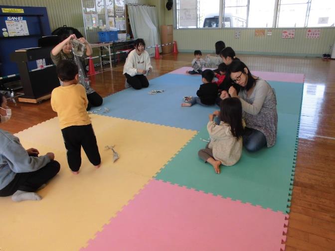 1月17日(水曜日)は、0歳の『ふんわりひろば』でした。わらべうたやふれあい遊び、