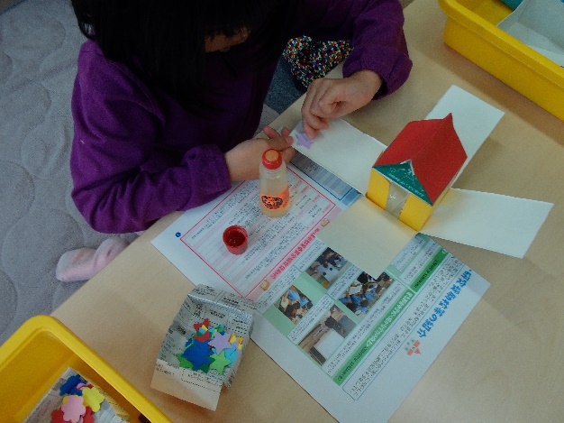 6月7日(土曜日)クラフトタイムでは『不思議な3Dボックス』を作ろう!ということでみんながんばって作っていました。