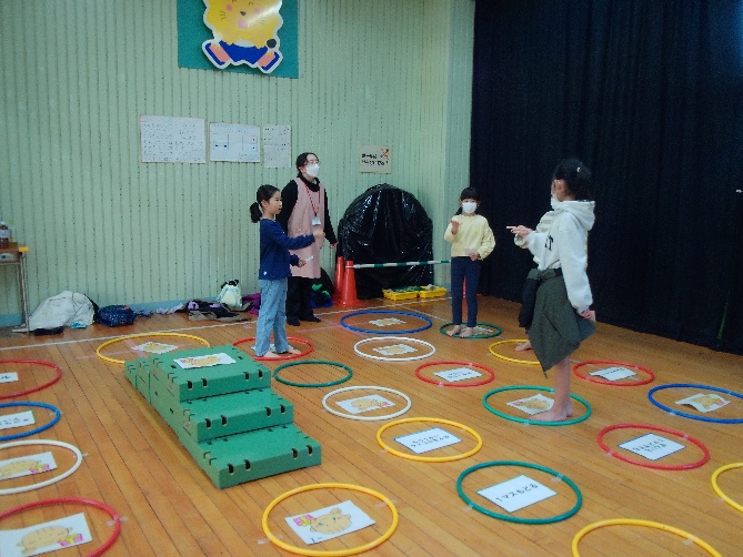 『へんしんぐるぐるぱ!』や『おとなこうえん』の体操から始まり、ふれあいあそび、絵本の読み聞かせなどのあと、『ぱっくん魚つり』の制作をしました。
