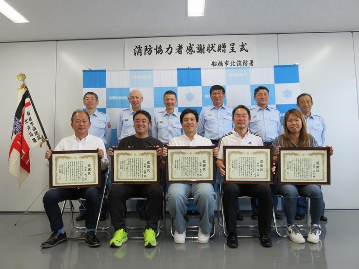 船橋市北消防署では、令和7年6月6日(金曜日)に感謝状贈呈式を行いました。