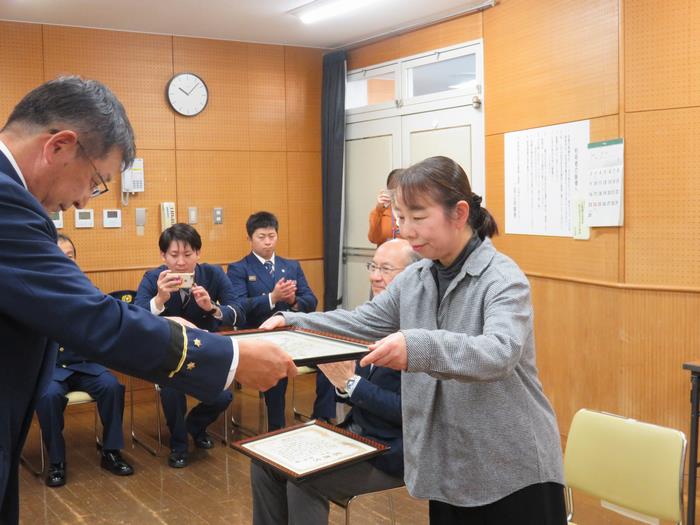令和7年11月27日に北消防署長から感謝状を贈呈しました