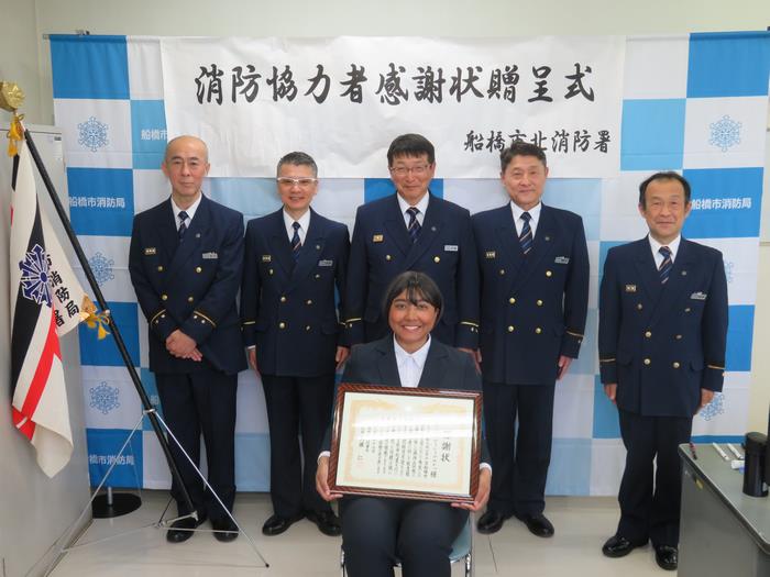 船橋市北消防署では、令和8年3月16日(月曜日)に感謝状贈呈式を行いました。