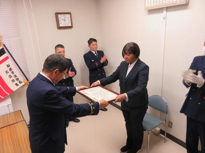 令和8年3月16日に北消防署長から感謝状を贈呈しました