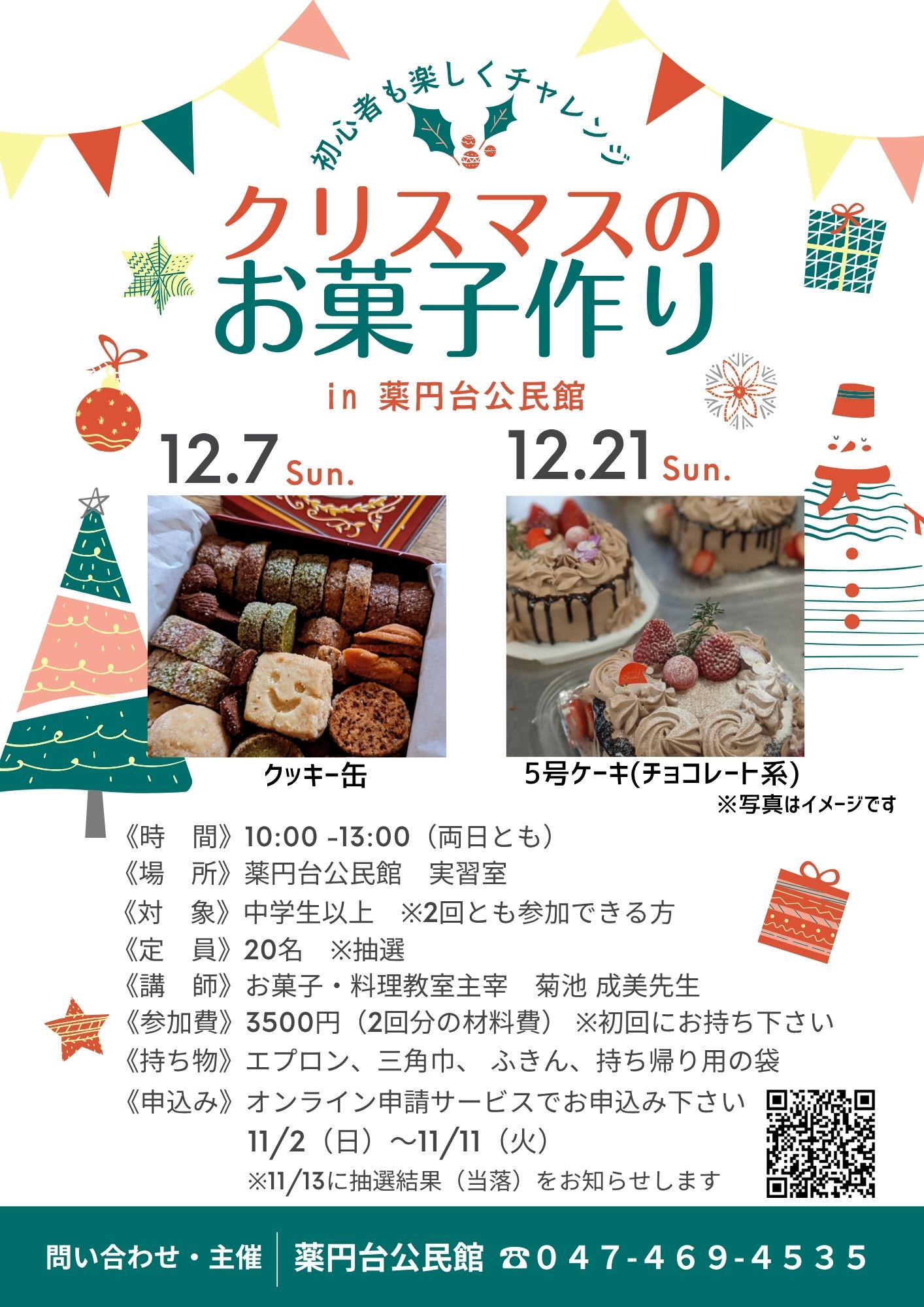 | クリスマスのお菓子作り | ビギナーでも楽しく美味しく作れるクリスマスのお菓子作り | 中学生以上 | 12月 |